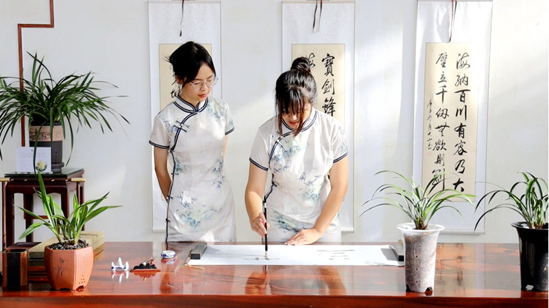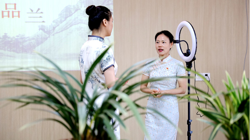 活动伊始,电子商务高水平专业群师生共同鉴赏兰花的高洁典雅与傲骨刚毅,感受筝乐的魅力,体验书法之美。