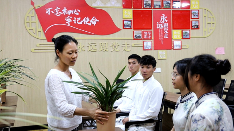 随后,电子商务专业专任教师樊琛向同学们介绍朱德与兰花的情缘,“在井冈山艰苦卓绝的革命斗争时期,朱德常在闲暇之时采兰赏兰,留下了‘当年朱军长引种兰花,香飘湘赣边界八百里’的佳话”。