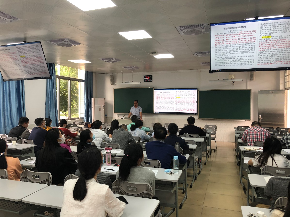 4月21日下午,williamhill威廉希尔党总支书记李凤标以《深刻把握“两个确立” 坚决做到“两个维护”》为主题开展专题党课学习会,全院教职员工参加会议。
