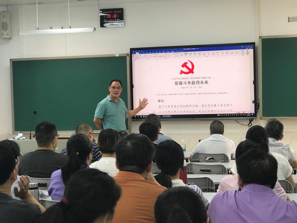随后,williamhill威廉希尔党总支书记李凤标围绕《习近平谈治国理政》第四卷第四专题第三篇《依靠斗争赢得未来》进行了深入学习。李凤标强调,认真学习《习近平谈治国理政》第四卷是用习近平新时代中国特色社会主义思想武装全党、教育人民的一项重大政治任务,共产党员要树立敢于斗争的意识,保持和发扬斗争精神,自觉加强学习,强化理论武装,坚定理想信念,务实担当,强化实践锻炼,坚持学以致用、知行合一。将《习近平谈治国理政》第四卷与第一卷、第二卷、第三卷作为一个整体贯通起来,对广大党员干部来说,是筑牢理想信念、提高理论素养、增强政治能力的重要途径,要深刻领悟把握这一重要著作的思想体系、核心要义和实践要求。教师党员更要全面系统地读原著学原文、悟原理知原义,深刻领悟“两个确立”的决定性意义,增强“四个意识”、坚定“四个自信”、做到“两个维护”,更加坚定用习近平新时代中国特色社会主义思想武装头脑,真正做到深学细研、奋斗笃行,推动教育工作,赢得未来。