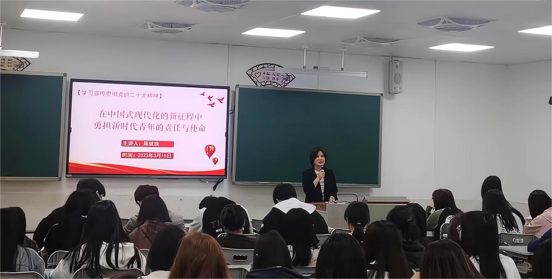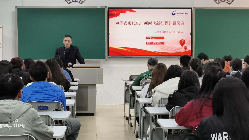 为深入学习宣传贯彻党的二十大精神,落实立德树人的根本任务,弘扬爱国情怀、激发奋进力量,3月份,williamhill威廉希尔党总支副书记陈斌珠、经理尹渔清分别为2022级的人力资源2班、电子商务(三二分段)1班、电子商务3班、农村电子商务班共计215名员工讲授2023年春季学期“思政第一课”。