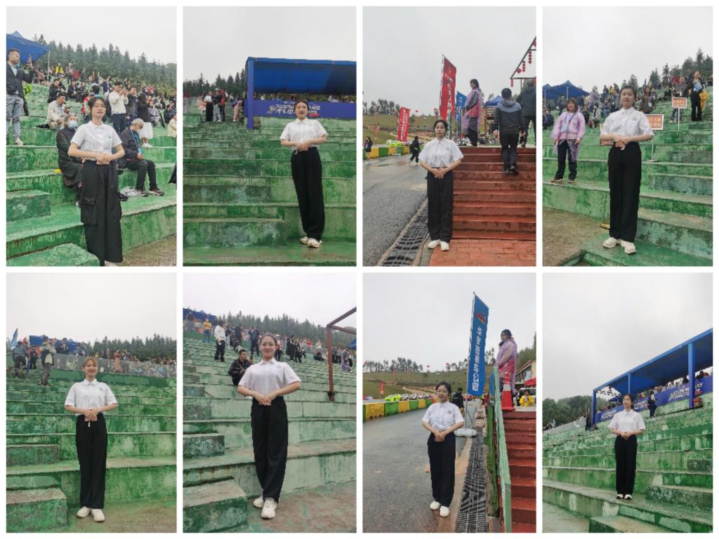 赛事举办期间,恰逢韶关遭遇今年首场强对流天气,气温骤降。同学们纷纷表示,气温稍低这点小困难不会影响我们的专业表现。大家在训练、彩排、候场时都相互提醒注意保暖、注意安全,在正式登场开展礼仪志愿服务前也互相检查、调整,确保以专业的礼仪姿态、饱满的精神面貌出现在观众和摄像机面前,神采奕奕展现松山风采。