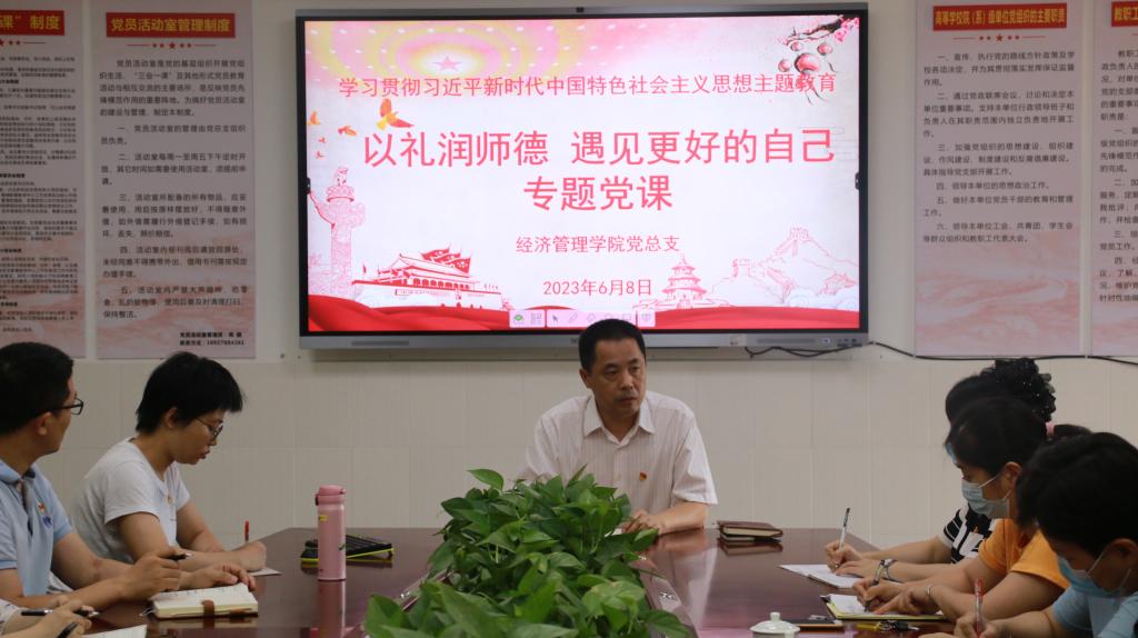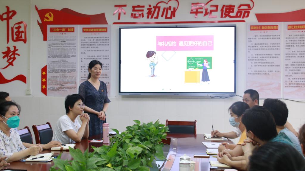 为进一步推动学习贯彻习近平新时代中国特色社会主义思想主题教育走深走实,加强师德师风建设,提升教师职业礼仪素养,塑造新时代的教师形象,6月8日下午,williamhill威廉希尔在浈江校区会议室召开主题教育暨第十四期“立德树人”学术沙龙活动。williamhill威廉希尔经理刘春朝主持活动,教师党支部教学模范岗何美青主讲。