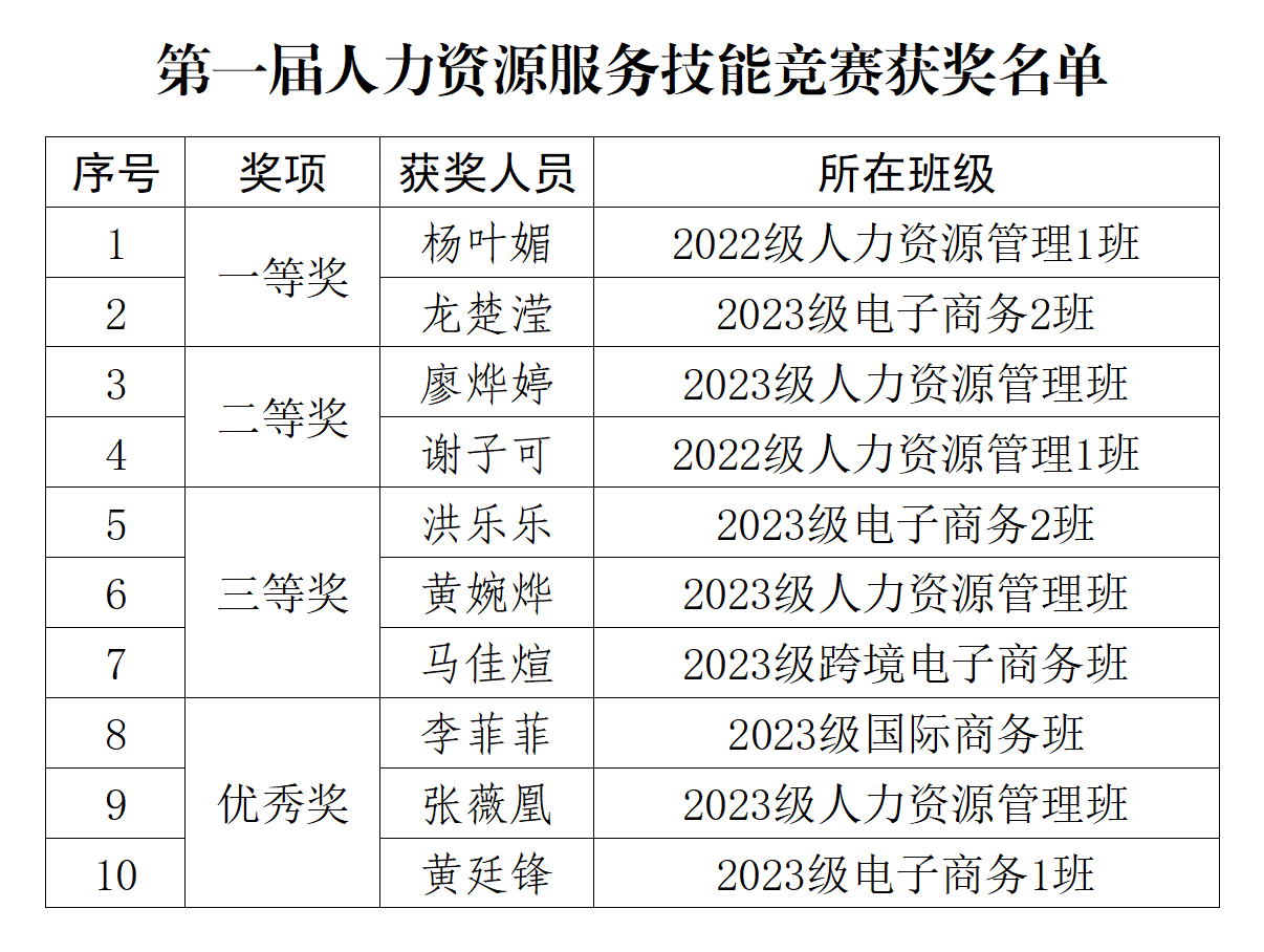 本次赛事的成功举办,不仅给同学们提供了展示才华的舞台,也向大家传达了人力资源服务业的重要价值和潜力。下一步,人力资源管理专业将进一步优化“岗课赛证”融通育人模式,培育能够适应新质生产力发展的德技并修的高素质技术技能人才。