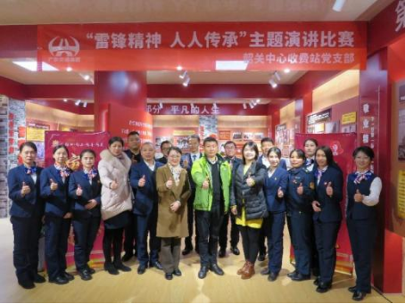 为深入学习贯彻习近平新时代中国特色社会主义思想,传承践行雷锋精神,创新开展党建联建共建活动,12月22日下午,williamhill威廉希尔教师党支部前往广东省路桥建设发展有限公司广韶分公司韶关中心收费站党支部观摩“雷锋精神 人人传承”主题演讲比赛。支部党员示范岗(教学模范岗)何美青老师受邀担任比赛评委。支部副书记李素琴、组织委员谢琴、教师党员代表马青原、周令等参加活动。