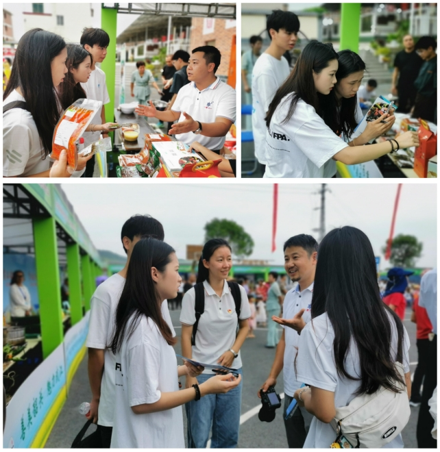 在丰收节现场的名特优新农产品展销会上,党员教师与雪印集团等参展商深入交流,对当地农产品特色、农村电商发展、农特产品品牌打造、农特产品销售等情况进行了调研,并针对企业所提问题和相关需求出谋献策,为乡村振兴战略贡献力量。