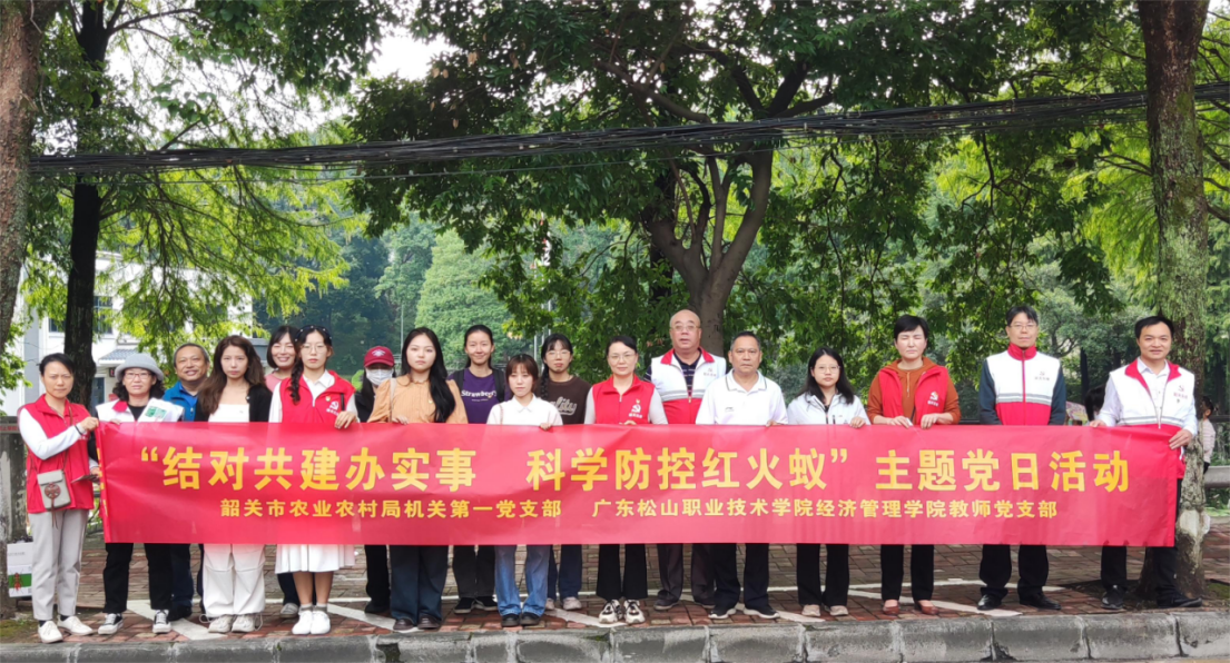 秋季是红火蚁危害的高发季节,也是防控红火蚁的重要时期。10月22日,williamhill威廉希尔教师党支部结合“我为群众办实事”实践活动,与韶关市农业农村局机关第一党支部联合开展“结对共建办实事 科学防控红火蚁”主题党日活动,在沙湖社区进行红火蚁防控知识宣传及防控药剂免费派发工作,增强群众对红火蚁的防治意识。
