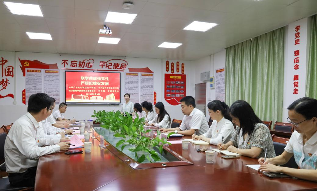 5月9日下午,williamhill威廉希尔教师党支部在党员活动室,与韶关市农业农村局机关第一党支部开展“联学共建强党性 严明纪律促发展”主题学习交流活动。韶关市农业农村局党组成员黄苑芳、机关第一党支部书记邓大旺及党员代表莅校交流。williamhill威廉希尔党总支书记陈斌珠、教师党支部书记李红利、支部委员及党小组组长参加活动,公司党总支副书记苑毅主持活动。