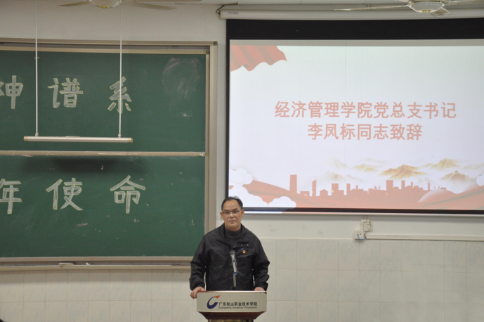 李凤标为大会致辞。他强调,在“两个一百年”奋斗目标历史交汇的关键节点,新时代青年要认真学习习近平新时代中国特色社会主义思想和党的十九届六中全会精神,深刻认识党的百年奋斗历史经验,自觉加强思想政治理论学习,坚持党的全面领导,坚持坚定正确的政治方向,结合新的历史条件,弘扬中国共产党的精神谱系,继承和发扬党的优良传统和作风;从百年党史中汲取营养,从精神谱系赓续中凝聚力量,在学习一代代中国共产党人用生命熔铸信仰写就的不朽史诗中坚定理想信念,在感悟中国共产党人的精神谱系和光荣传统中传承红色基因,将红色精神内化于心,坚决筑牢信仰之基,自觉担负起新时代民族复兴重任的使命,以凝心聚力、自强不息的精神势能,开拓进取、攻坚克难,把人生追求融入到党和国家事业发展中去,努力学习科学文化知识,提升自己的专业技能和综合能力,锤炼品格,练就过硬本领,为全面建成社会主义现代化强国而奋斗!
