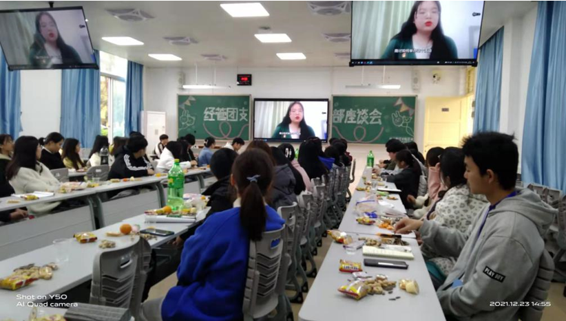 会议上由团干苏梦琪、梁仕平、以及周曼琪同学对团支书进行培训,也由2019级团支书代表为2020级团支书与2021级团支书分享心得。