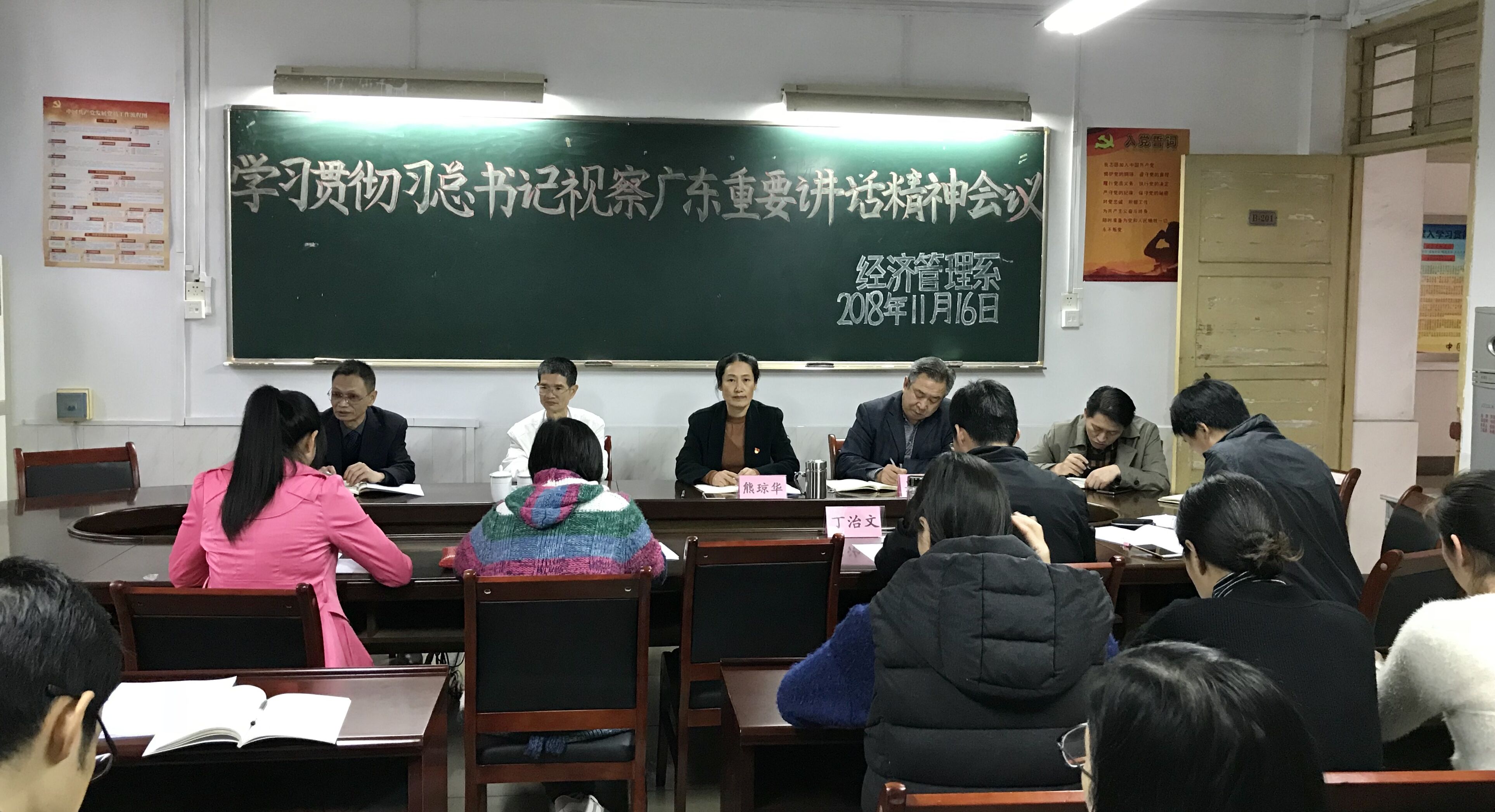 2018年11月16日,经济管理系党总支组织全系教师在系会议室召开了学习贯彻习近平总书记视察广东重要讲话精神会议。公司党委书记谢琼杰参加了会议并作重要讲话,会议由系党总支书记熊琼华主持。 会上,教师代表和系领...